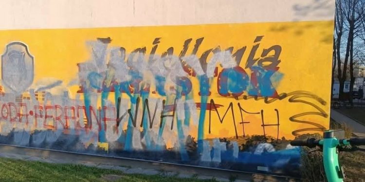 Mężczyźni zostali zatrzymani, gdy wracali z Białegostoku do Krakowa. Zarzut, to zniszczenie murali z grafikami wykonanymi przez fanów Jagiellonii Białystok.