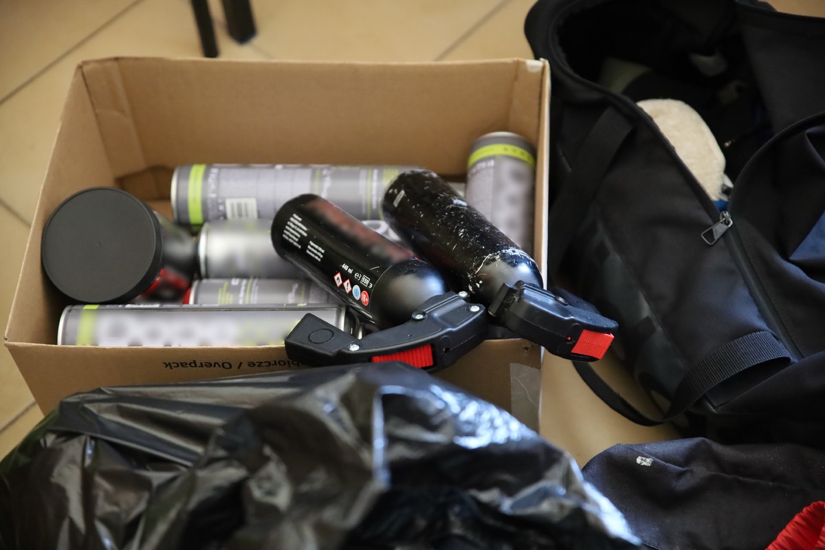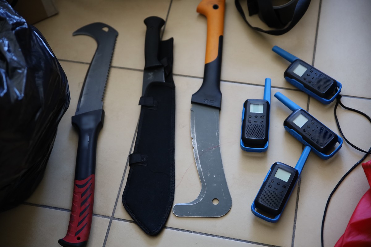 Zatrzymani, to czterej mieszkańcy województwa małopolskiego w wieku od 24 do 29 lat. Policjanci znaleźli przy nich pojemniki z farbą, noże, maczety, miotacze gazowe a także krótkofalówki oraz elementy z barwami pseudokibiców.