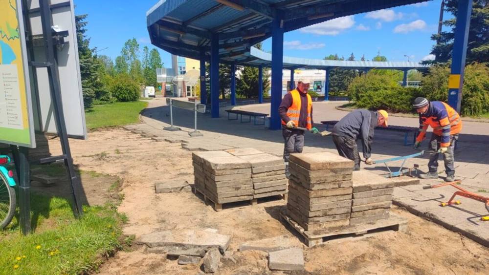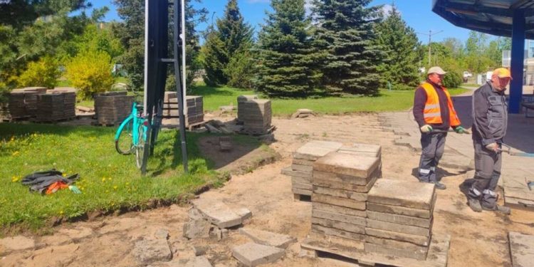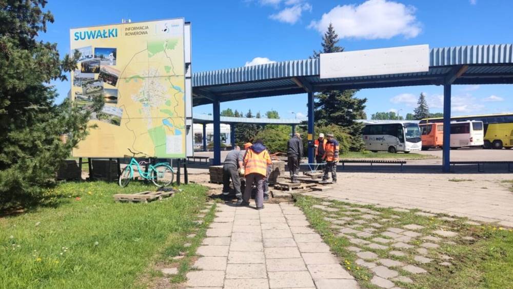 Dobiegają końca prace przy dworcu PKS w Suwałkach. Pracownicy Zarządu Dróg i Zieleni wymieniają stare i zniszczone chodniki wokół dworca na nowe.