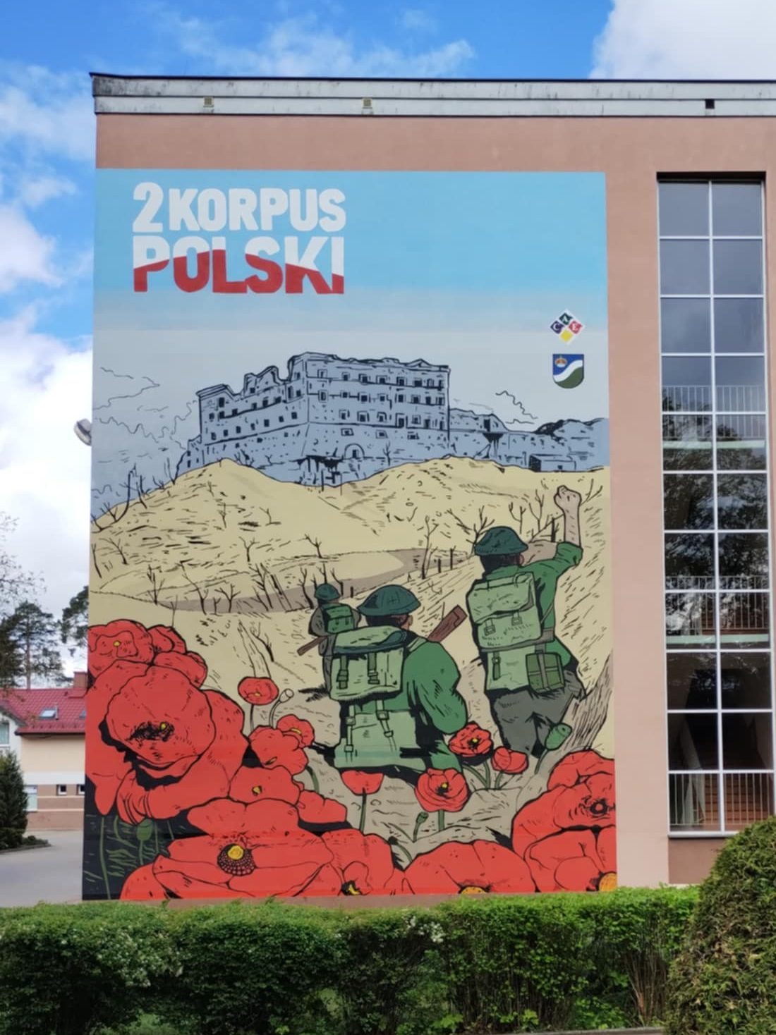 Mural upamiętniający żołnierzy 2. Korpusu Polskiego powstał w Augustowskim Centrum Edukacyjnym. Placówka chce w ten sposób uczcić pamięć walczących, którzy 81 lat temu wznieśli polską flagę nad gruzami klasztoru Monte Cassino.