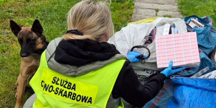 Prawie 7 tysięcy przemyconych paczek papierosów na posesji w Hajnówce. Kontrabandę znaleźli funkcjonariusze podlaskiej Krajowej Administracji Skarbowej.