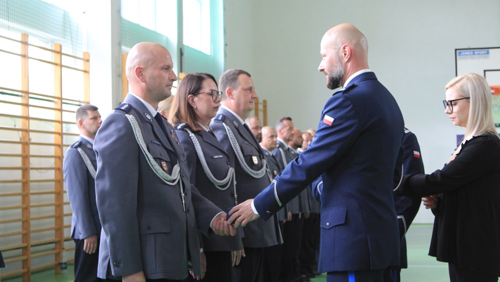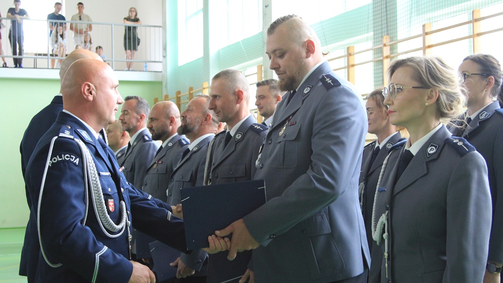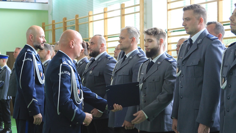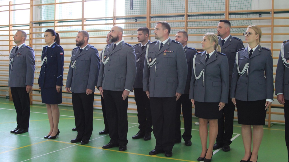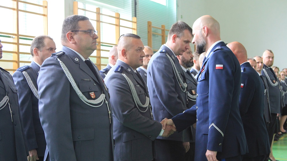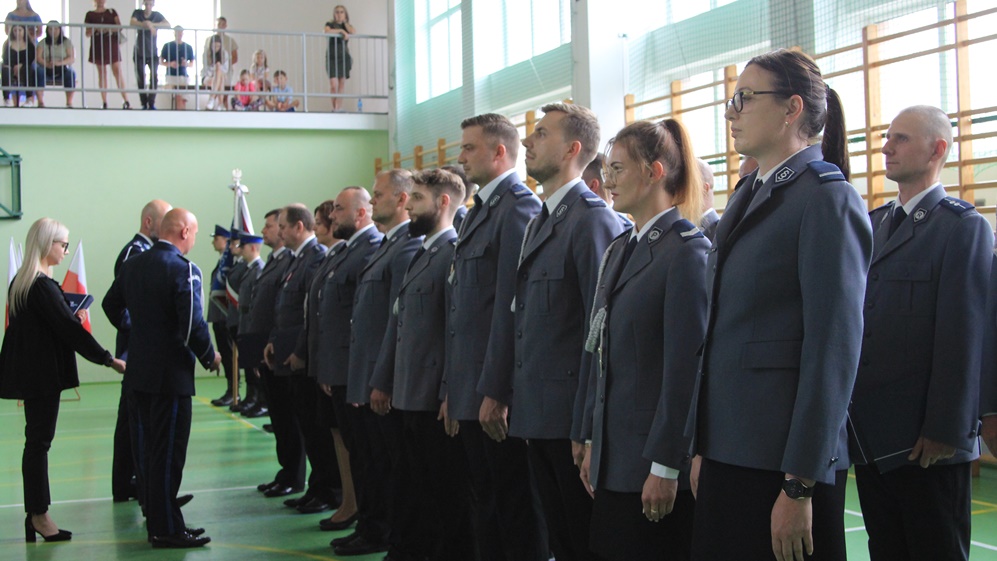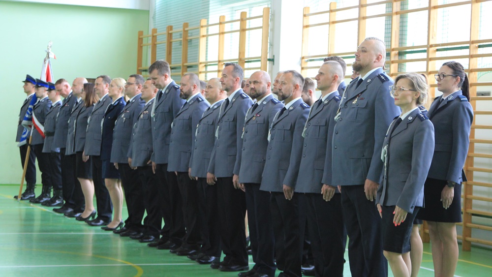Awanse, odznaczenia i wyróżnienia. Za nami Powiatowe Obchody Święta Policji w Ełku. Główne uroczystości odbyły się w sali sportowej Zespołu Szkół nr 6.