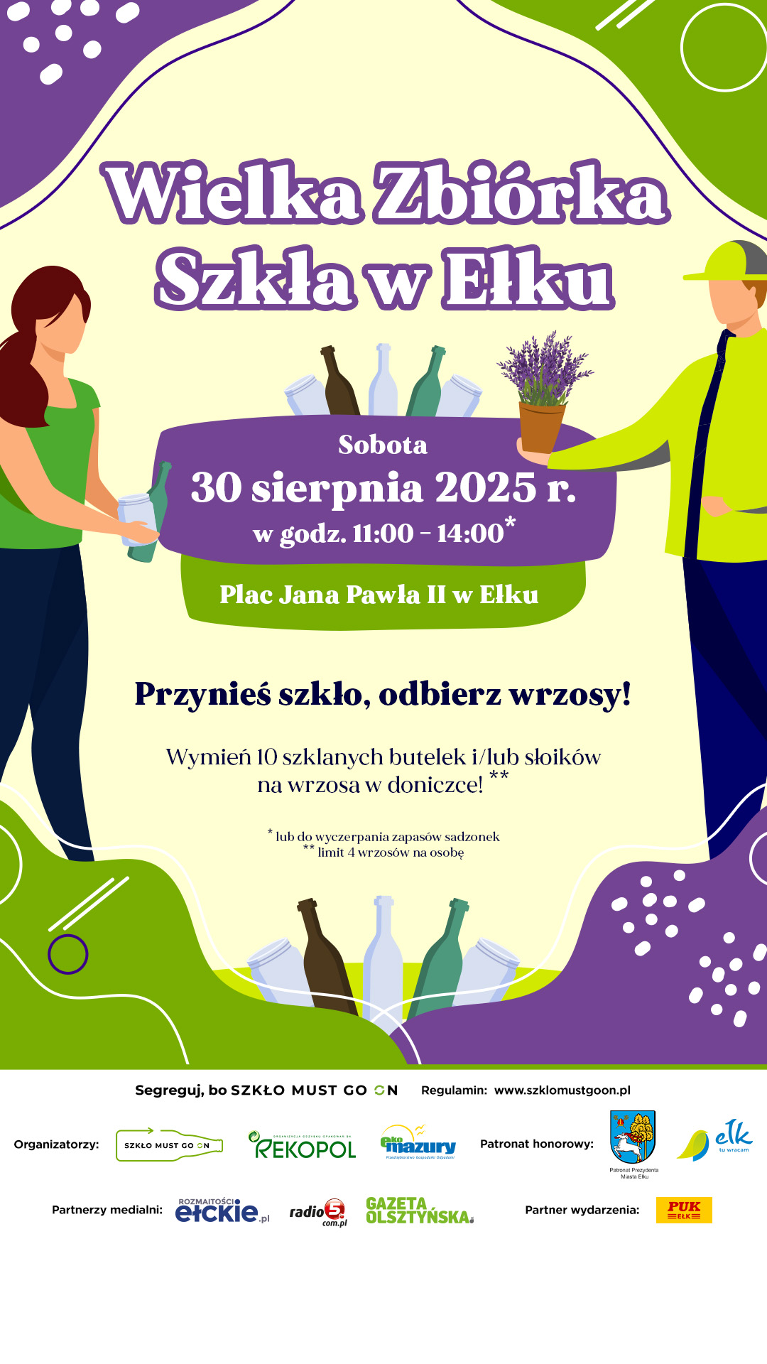 Od godziny 11:00 do 14:00 (lub do wyczerpania zapasów roślin), każdy mieszkaniec, który przyniesie co najmniej 10 szklanych opakowań – butelek i/lub słoików – otrzyma wrzos w doniczce. Limit wynosi do 4 roślin na osobę.