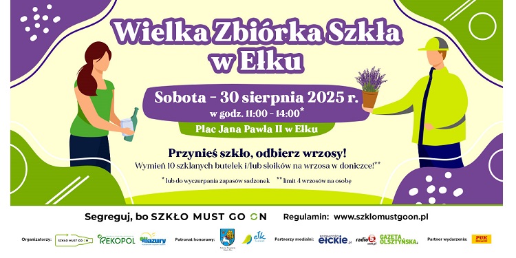 W sobotę, 30 sierpnia 2025 r., Plac Jana Pawła II w Ełku stanie się miejscem wyjątkowego połączenia ekologii, edukacji i tradycji. Przy okazji VIII Festynu Łowieckiego „Ełkowisko” i Święta Miodu, odbędzie się Wielka Zbiórka Szkła, organizowana w ramach ogólnopolskiej kampanii „Szkło Must Go On”.