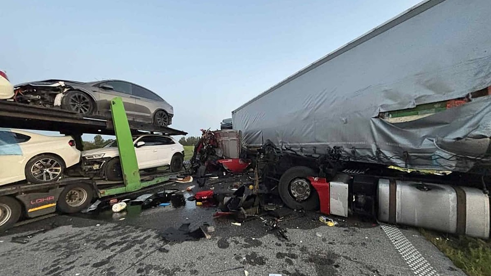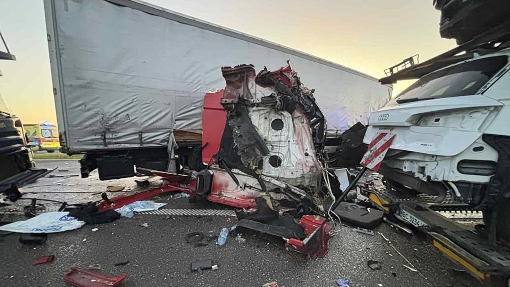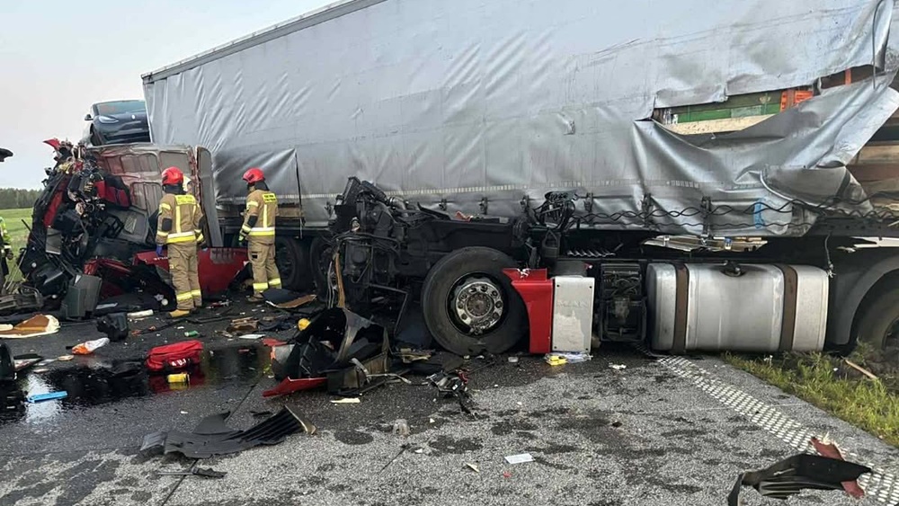 Tragiczny wypadek na drodze ekspresowej S61 na trasie Ełk – Szczuczyn. W zderzeniu czterech aut ciężarowych zginął kierowca jednego z nich.