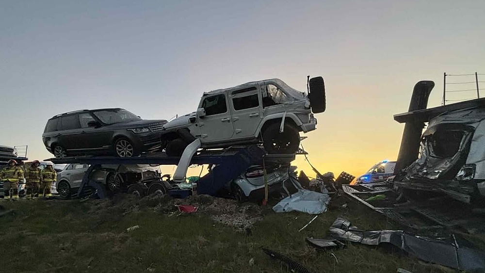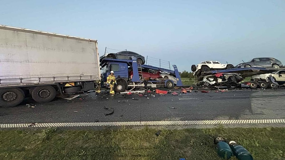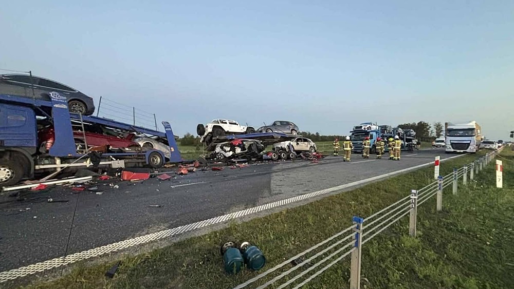 Zgłoszenie wpłynęło do służb dziś (15.08) około godziny 4.15. Do wypadku doszło na wysokości miejscowości Bęćkowo w gminie Szczuczyn. Uczestniczyły w nim trzy lawety przewożące auta oraz samochód ciężarowy marki Scania, poinformowała Sylwia Gosiewska, oficer prasowy Komendy Powiatowej Policji w Grajewie.