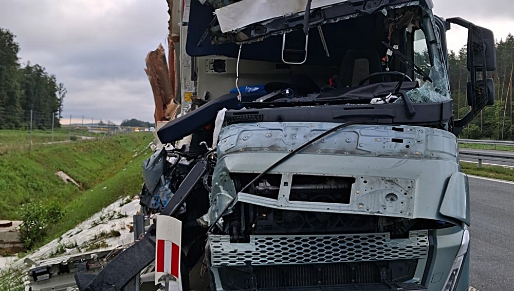Zderzenie trzech pojazdów ciężarowych na trasie S61