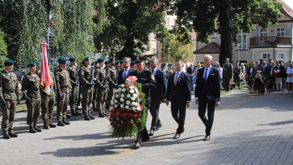 Następnie przyszedł czas na składanie kwiatów pod Pomnikiem Bohaterskim Żołnierzom Września z udziałem Wojskowej Kompanii Honorowej wystawionej przez 16. Batalion Rozpoznawczy w Ełku.