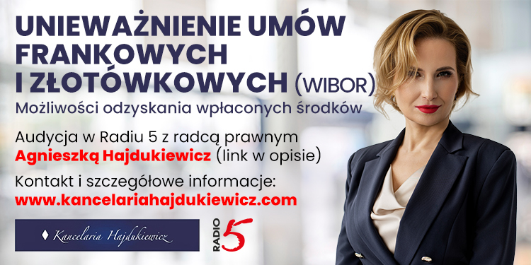 Audycja z Panią Mecenas Agnieszką Hajdukiewicz dotycząca kredytów waloryzowanych do waluty obcej, m.in. frankowych oraz złotówkowych (WIBOR)
