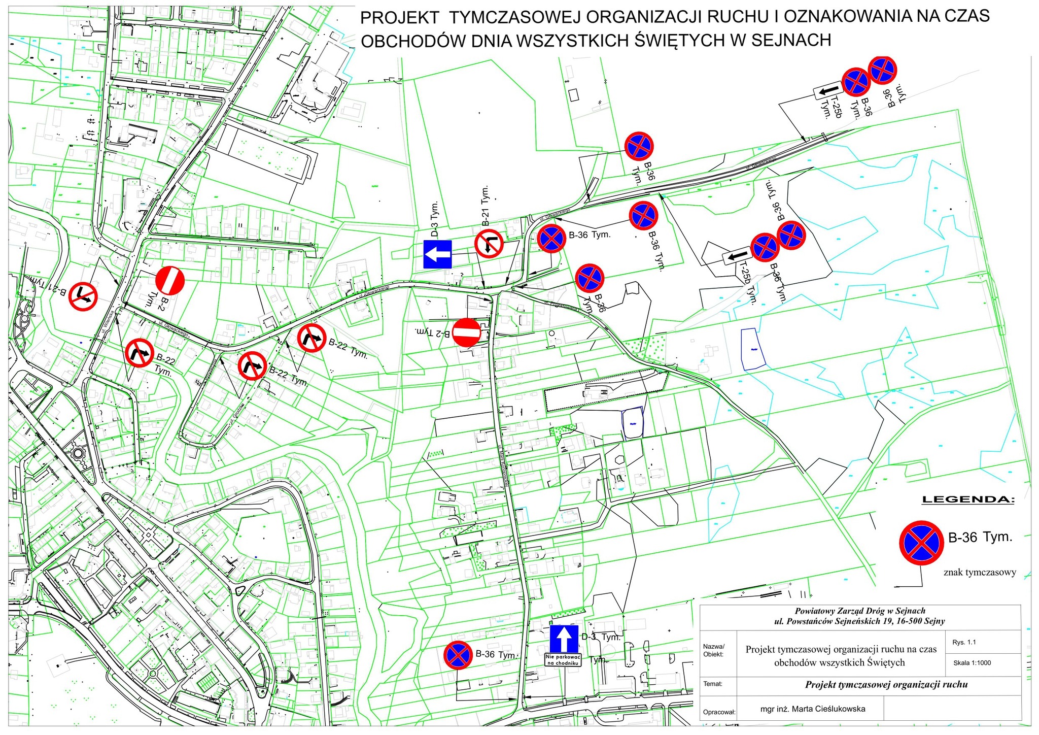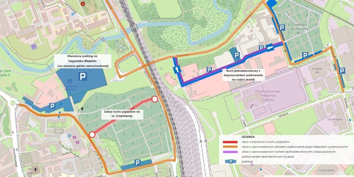 Dojazd na cmentarz możliwy będzie ulicą Marii Konopnickiej, gdzie wprowadzony zostanie ruch jednokierunkowy – od ulicy Powstańców Sejneńskich do ulicy Głowackiego. Wyjazd odbywać się będzie ulicą Głowackiego.