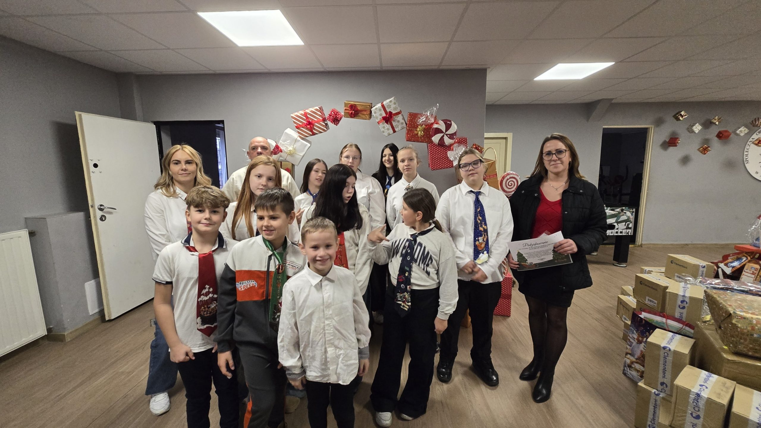 Przedstawiciele szkoły przyjechali z pełnymi pudłami.