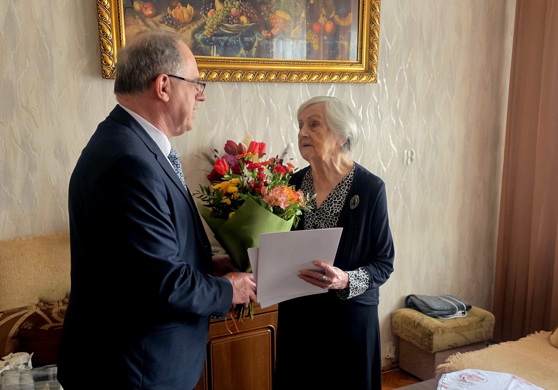 Setne urodziny obchodziła Helena Hanc z Suwałk. Z tej okazji jubilatkę odwiedził Czesław Renkiewicz, prezydent Suwałk, aby wręczyć drobny upominek oraz przekazać gratulacje.