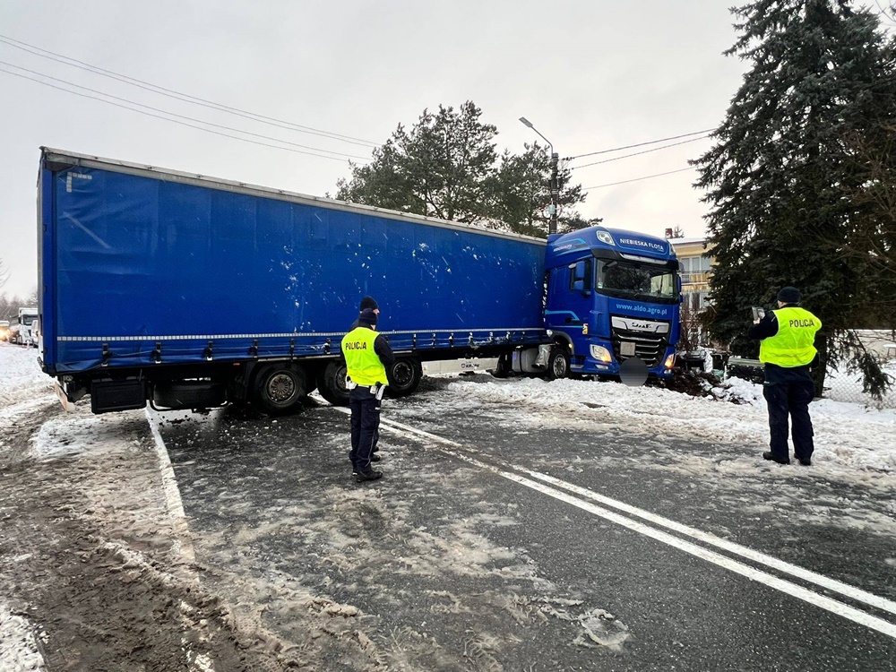 Utrudnienia na drodze krajowej nr 63 w powiecie giżyckim. W miejscowości Wyszowate kierowca pojazdu ciężarowego, prawdopodobnie jadąc z nadmierną prędkością wpadł w poślizg i wylądował w rowie. Jak informuje Iwona Chruścińska, oficer prasowy Komendy Powiatowej Policji w Giżycku. TIR został wyciągnięty na jezdnię. Służby oczekiwały na przyjazd ciągnika, który umożliwił odholowanie pojazdu oraz usunięcie plamy oleju z jezdni.