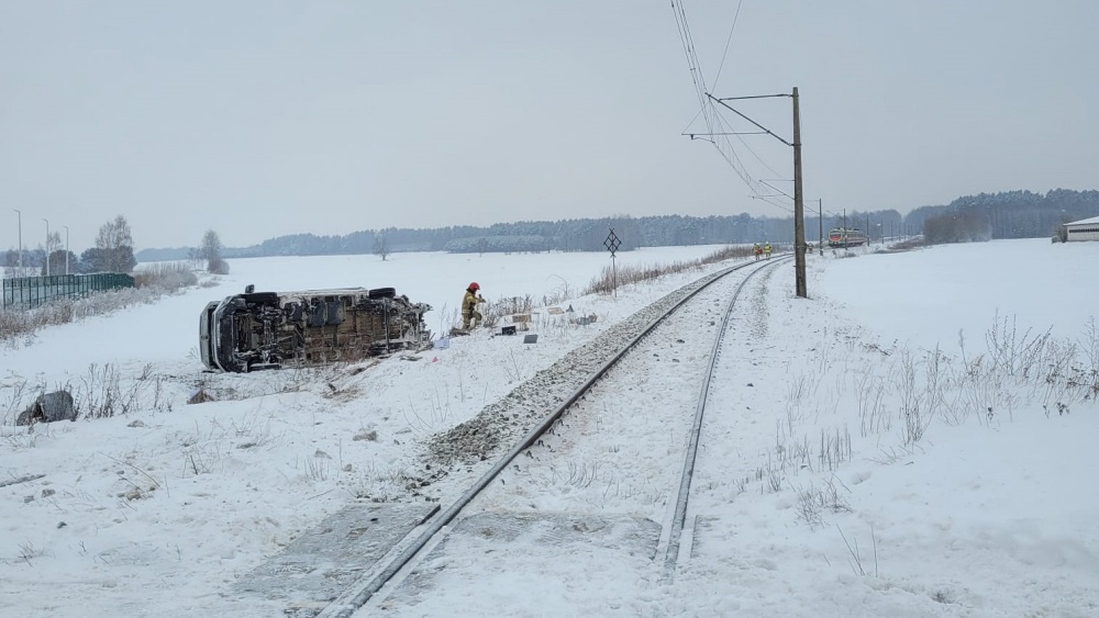 Zderzenie pociągu z busem na trasie Ełk – Białystok. Jedna osoba trafiła do szpitala.