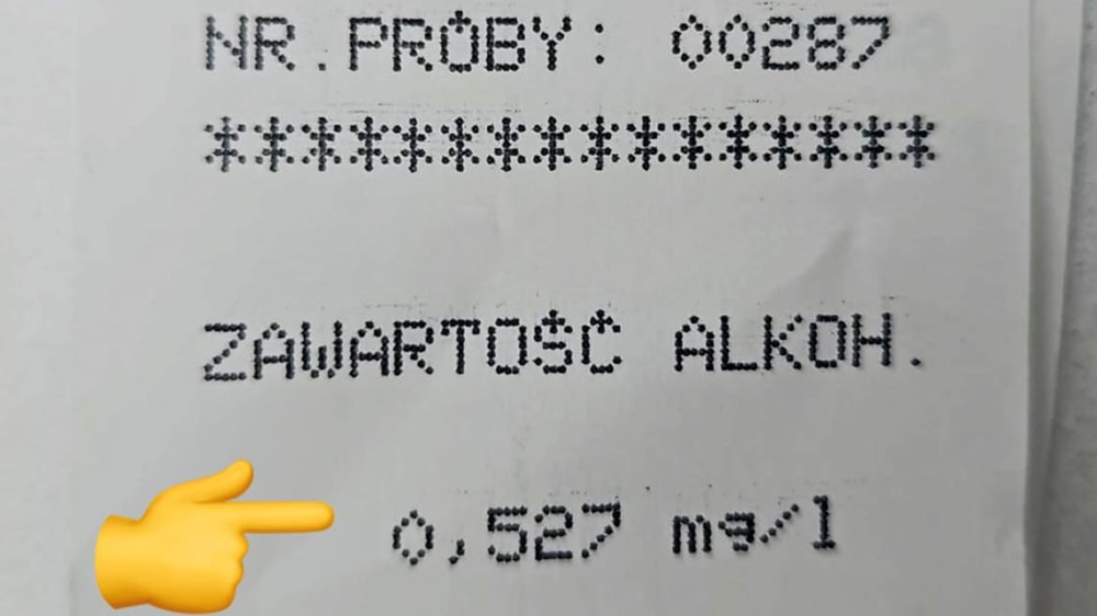 Przeprowadzone przez funkcjonariuszy badanie trzeźwości wykazało, że mężczyzna miał ponad 1 promil alkoholu.