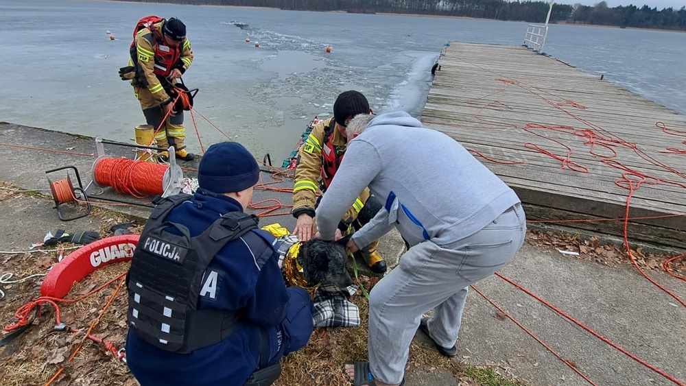 Dzięki szybkiej i profesjonalnej akcji strażaków oraz wykorzystaniu specjalistycznego sprzętu do ratownictwa lodowego, udało się dotrzeć do zwierzaka i bezpiecznie ewakuować go z lodowatej wody, relacjonuje przebieg akcji oficer prasowy Komendanta Powiatowego PSP w Olecku mł. kpt. Tomasz Cichocki.