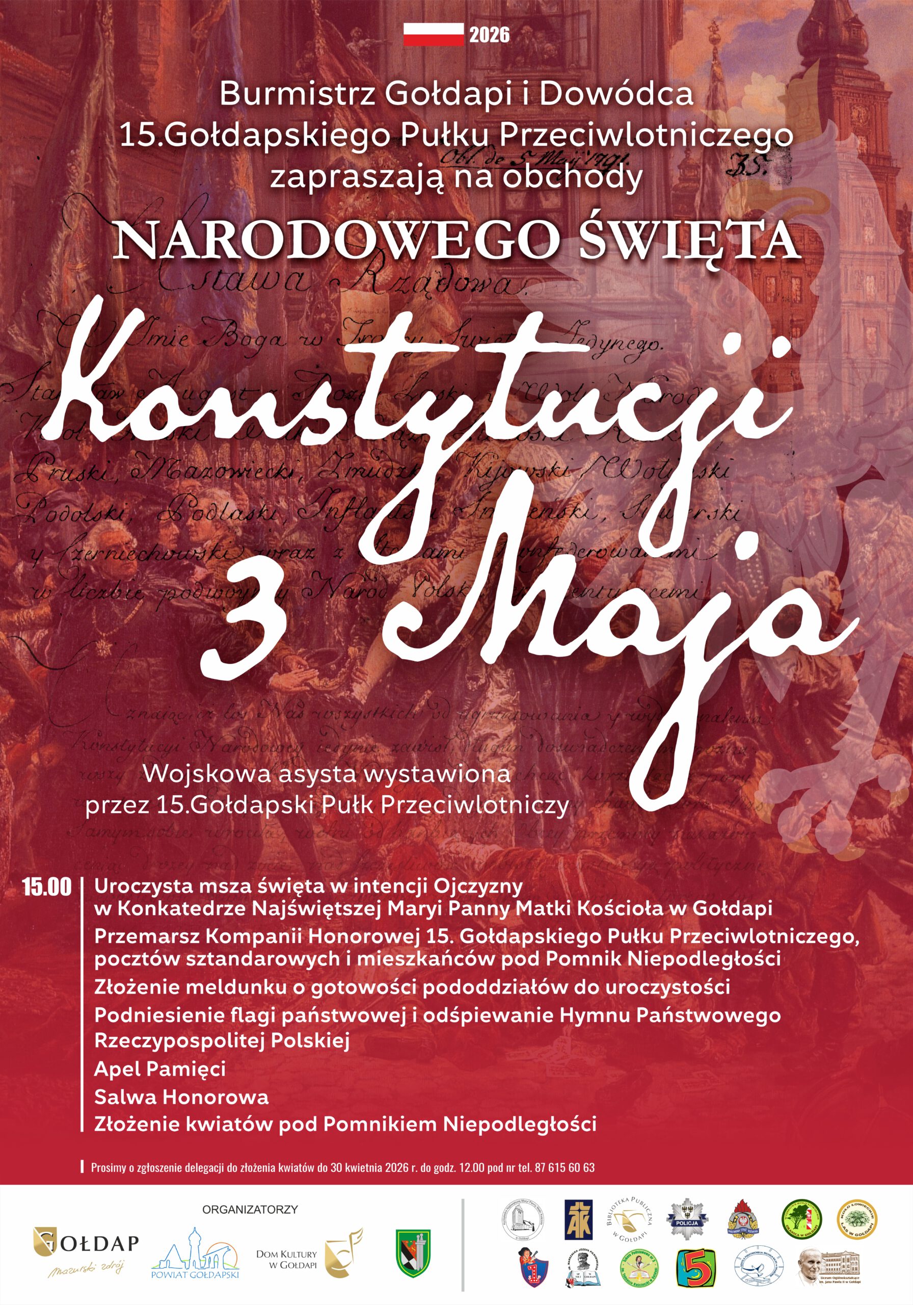 W niedzielę uroczystości z okazji Narodowego Święta Konstytucji 3 Maja rozpoczną się mszą świętą w intencji Ojczyzny w Konkatedrze Najświętszej Maryi Panny Matki Kościoła w Gołdapi. Następnie uczestnicy przemaszerują pod Pomnik Niepodległości, gdzie odbędzie się część oficjalna z udziałem Kompanii Honorowej 15. Gołdapskiego Pułku Przeciwlotniczego.
