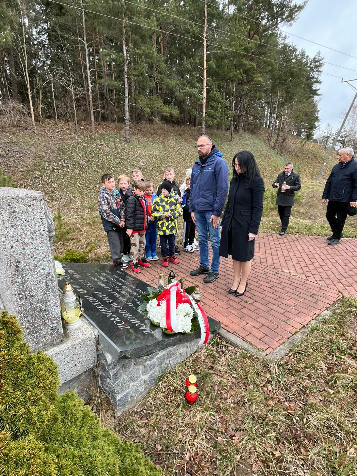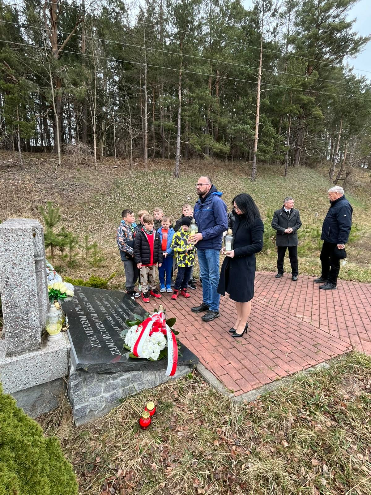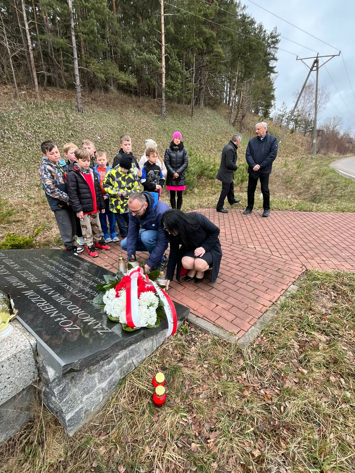 Kwiaty i znicze pod upamiętniającym polskich patriotów pomnikiem w podsuwalskim Tartaku złożyli w środę (08.04) Zbigniew Mackiewicz, wójt gminy Suwałki oraz towarzyszący mu samorządowcy i dzieci ze Szkoły Podstawowej w Starym Folwarku.