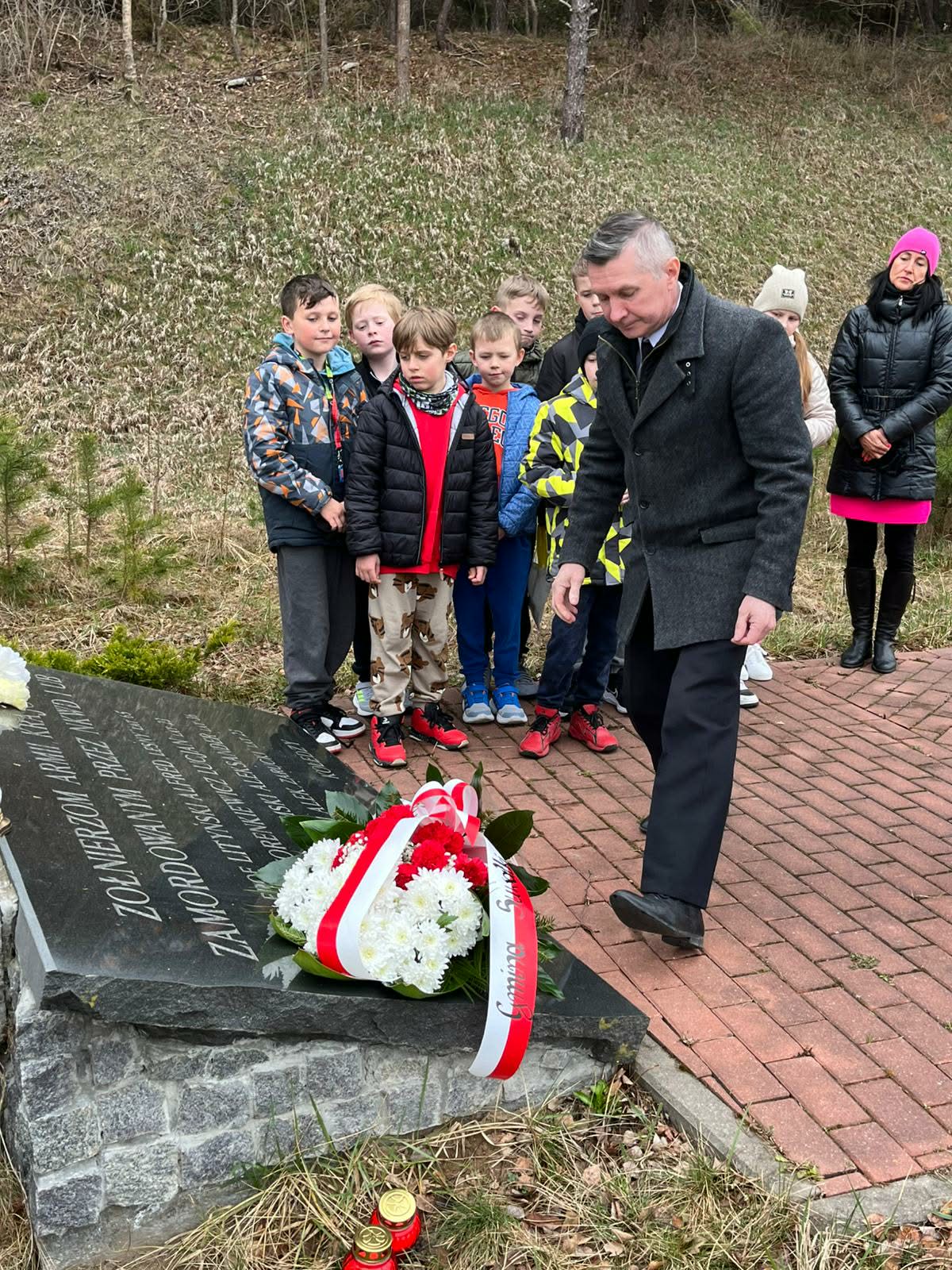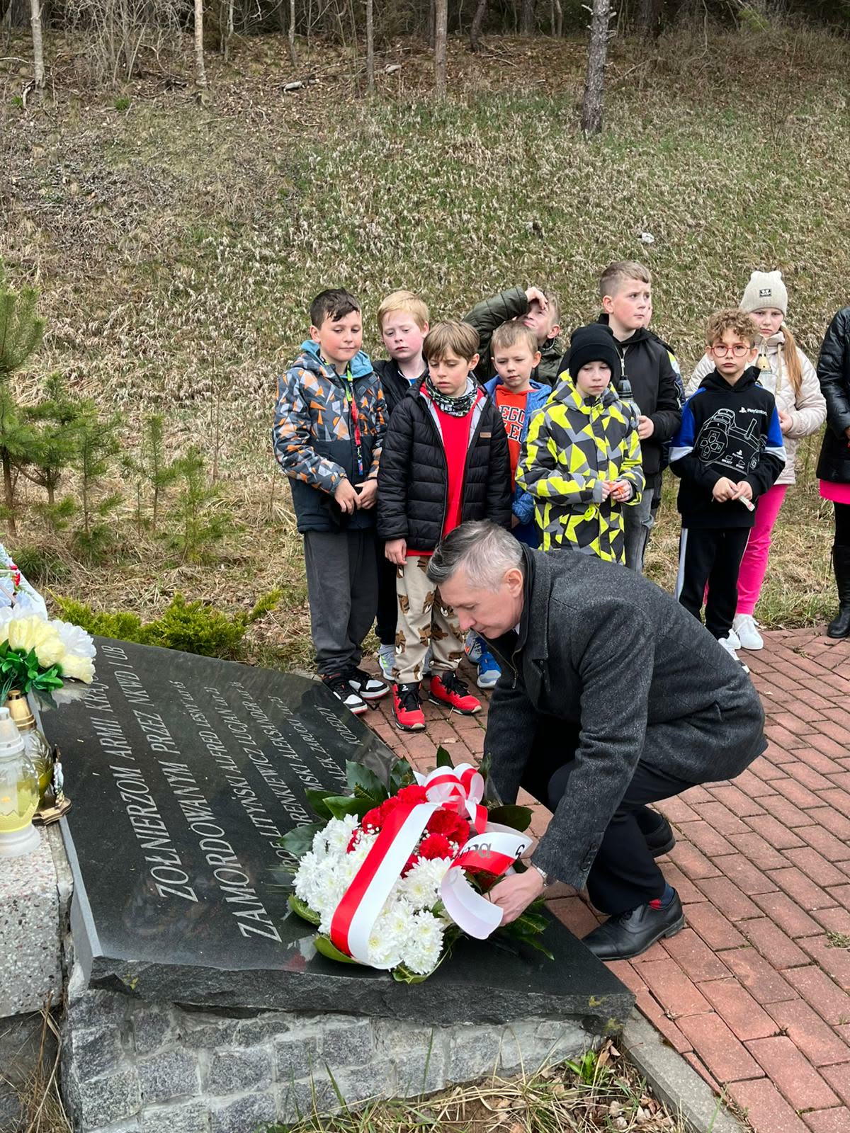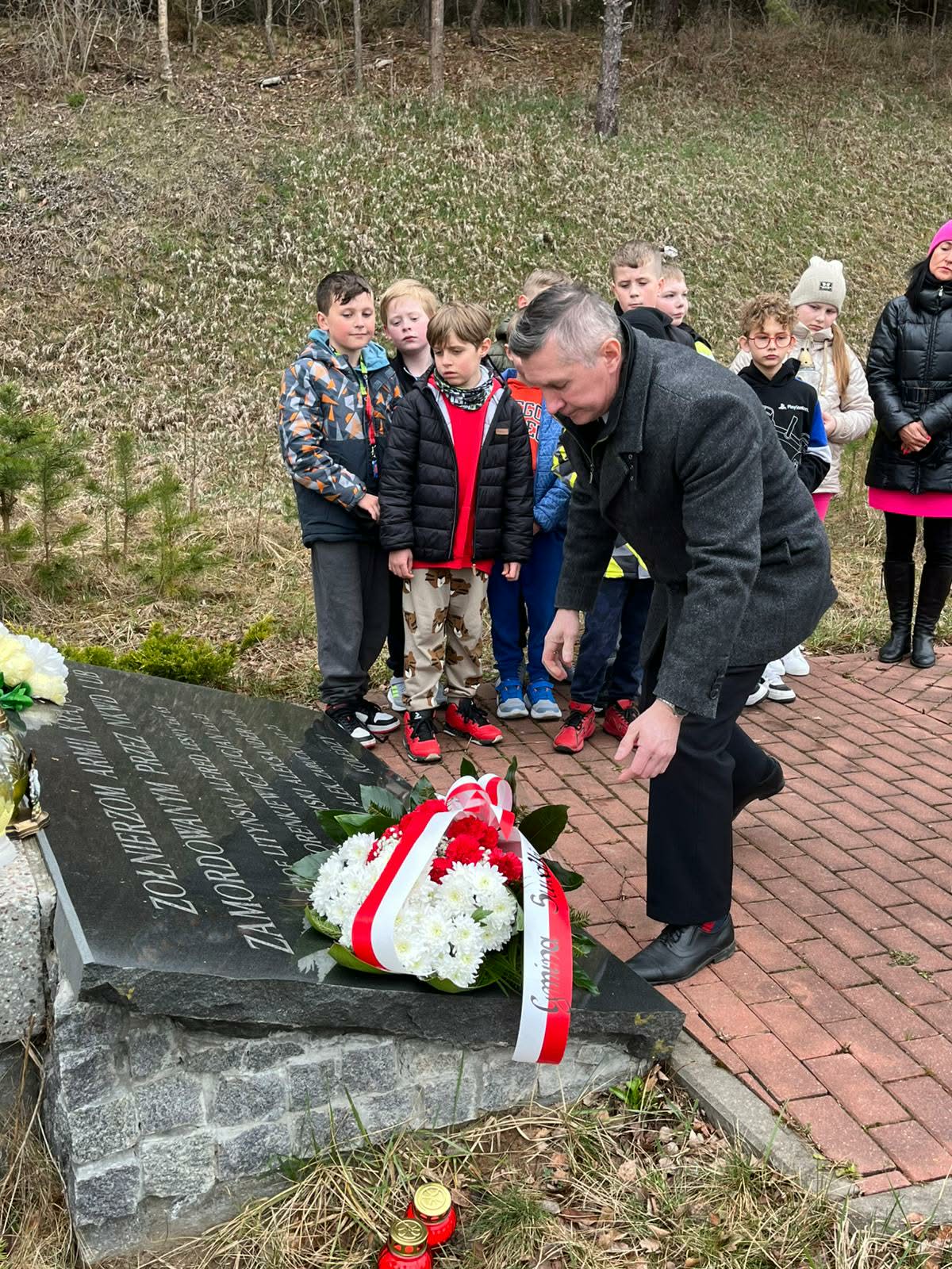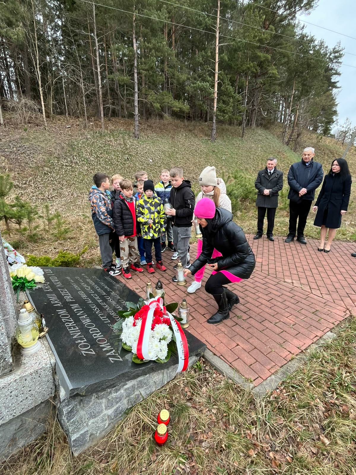 Kwiaty i znicze pod upamiętniającym polskich patriotów pomnikiem w podsuwalskim Tartaku złożyli w środę (08.04) Zbigniew Mackiewicz, wójt gminy Suwałki oraz towarzyszący mu samorządowcy i dzieci ze Szkoły Podstawowej w Starym Folwarku.