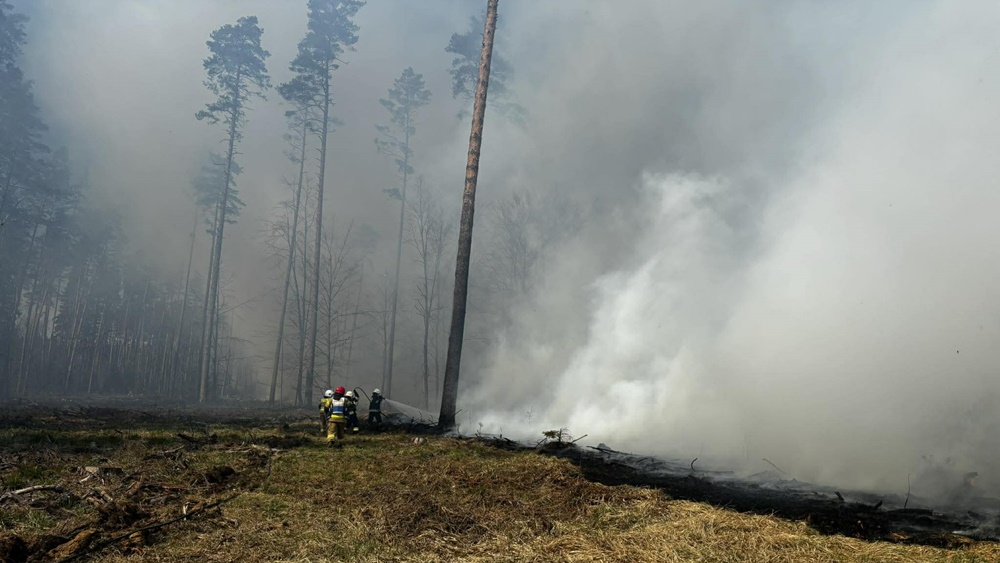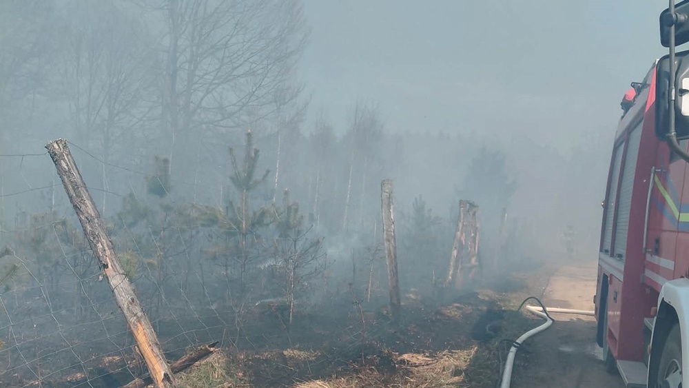 Zgłoszenie o pożarze lasu wpłynęło do stanowiska kierowania piskich strażaków w czwartek (23.04) )około godz. 13.30. Ogień pojawił się w wyniku zwarcia, które nastąpiło w wyniku upadku drzewa na linię wysokiego napięcia. Początkowo pożar obejmował około hektara 15-letniego gęsto porośniętego młodnika. Akcję gaśniczą od początku utrudniał silny, porywisty wiatr, który powodował błyskawiczne rozprzestrzenianie się ognia, relacjonował przebieg działań oficer Kuliś.