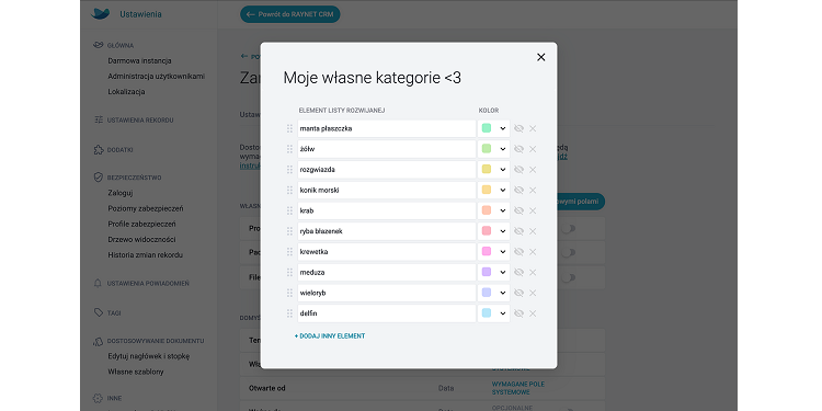Kategorie własne – zarządzanie listą