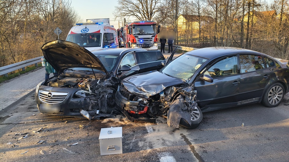 Zderzenie aut na DK63. Dwie osoby przetransportowano do szpitala