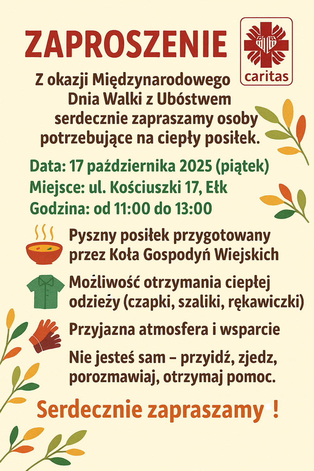| 0 wydarzenia, | 0 wydarzenia, | 0 wydarzenia, | 8 wydarzenia, - ![]() Ełk Na ciepły posiłek zaprasza potrzebujących Caritas Diecezji Ełckiej. W najbliższy piątek, 17 października obchodzimy Międzynarodowy Dzień Walki z Ubóstwem. Tego dnia w godzinach 11.00-13.00 w Schronisku im. św. Ojca Pio przy ul. Kościuszki 17 w Ełku, będzie można posilić się daniami przygotowanymi przez Koła Gospodyń Wiejskich. Ale nie tylko. Każdy może liczyć na wsparcie […] | |||